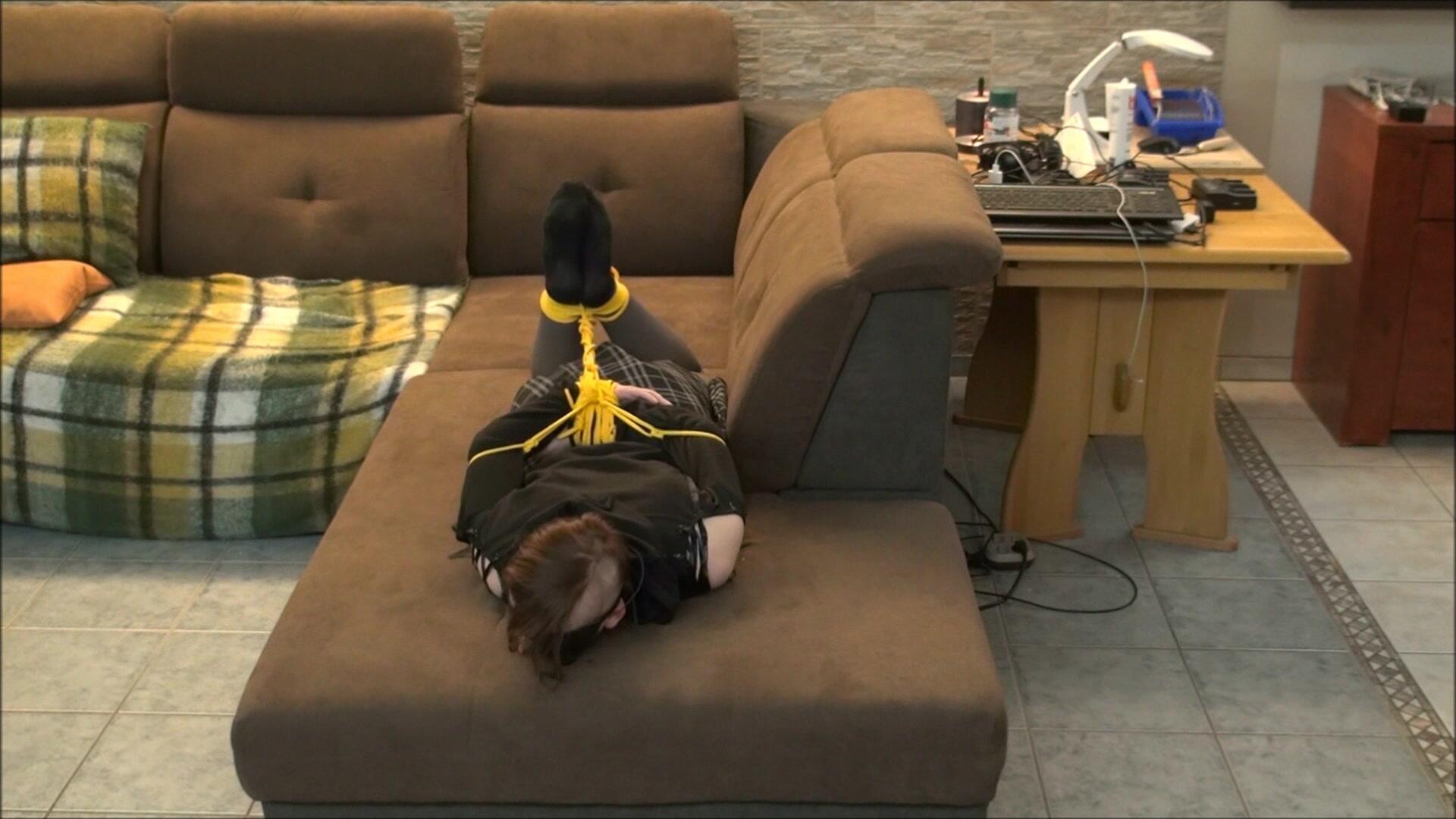 Stefanie tests two hogtie variations.Mike ties her up with ropes.To ensure Stefanie can concentrate fully, he gags her with a bit gag and blindfolds her.Will Stefanie manage to free herself?
